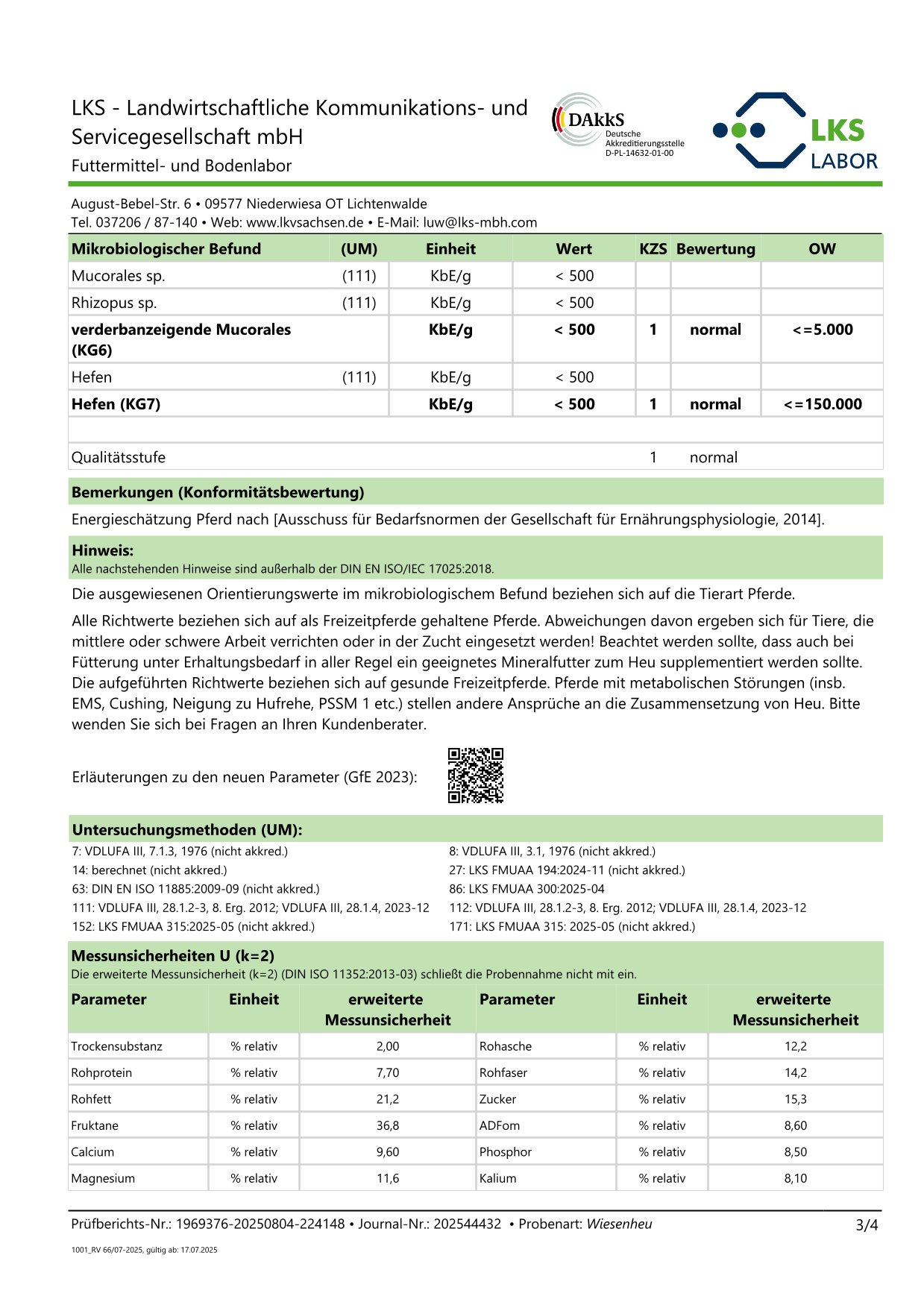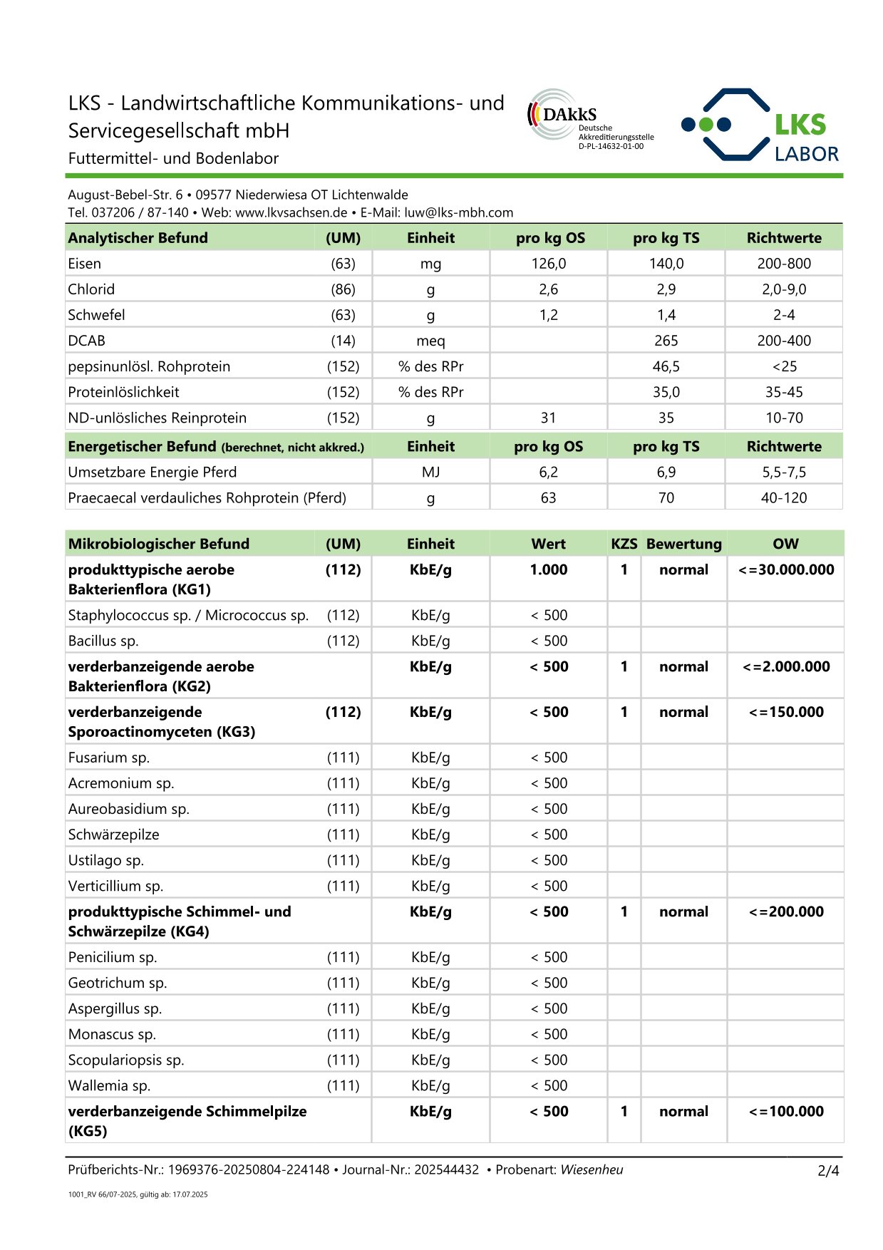„Der Besatz an Bakterien, Hefen, Schimmel- und Schwärzepilzen überschreitet die Orientierungswerte nicht. Soweit untersucht, bestehen keine Bedenken gegen eine sachgerechte Fütterung.“